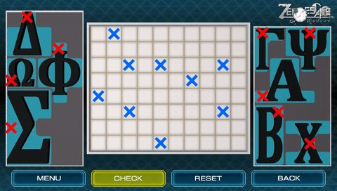 大きいパーツから配置場所を決める。Σのパーツを置ける場所は2カ所あるが、他のパーツを配置することも考えると1カ所に決まる。Σのパーツを置いた後は、その凹みに挟まった×に重ねるパーツを考えるが、それも1種類しかないのですぐに決まるだろう。