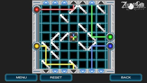 4色のレーザーがすべて中央の十字パネルに同色方向から当たるように盤面の各列をスライドさせる。十字パネルの列は動かせない。