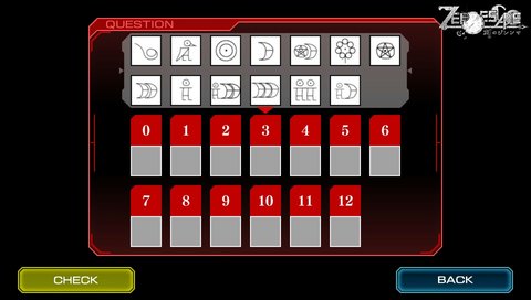 この器械自体は正解しても特に変化はない。縦軸に出力された4つの図柄を中枢体パズルで入力すること。